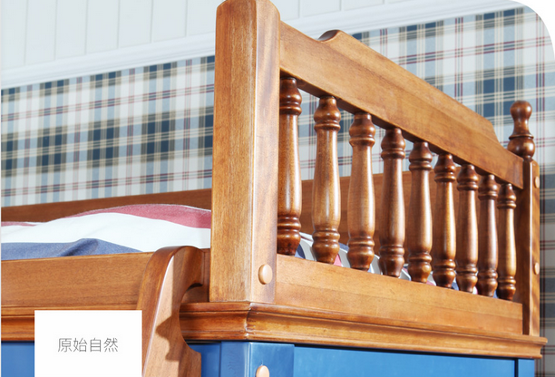 全实木的材质坚硬牢固,适合调皮好动的男孩子们,非常耐用。红胡桃木质地细腻、虫眼少、有良好的结构稳定性,非常适合用来制作床架,衣柜,地板等长期使用的家具。