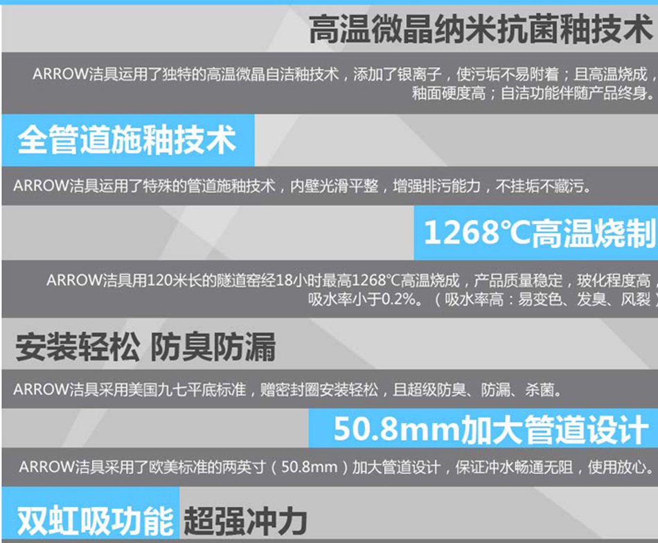 ARROW箭牌卫浴直冲式连体座便器AB1287