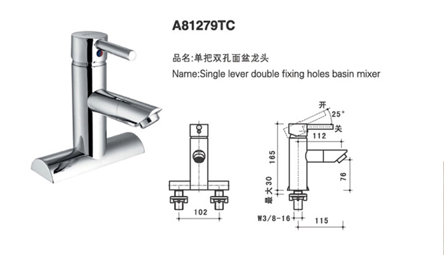 箭牌卫浴ARROW 全铜单把双孔冷热水A81279C面盆龙头坐式