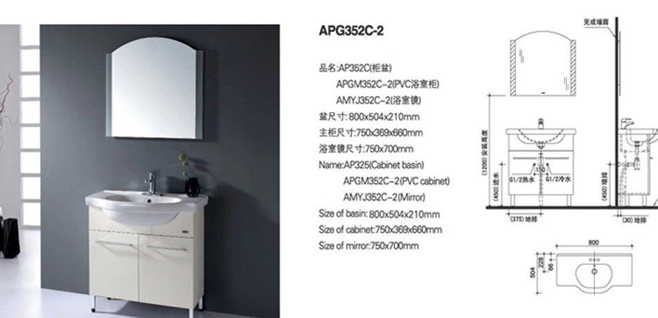 原厂** ARROW箭牌浴室柜 APG352C-2洗面盆组合柜PVC柜(不含龙头和去水)