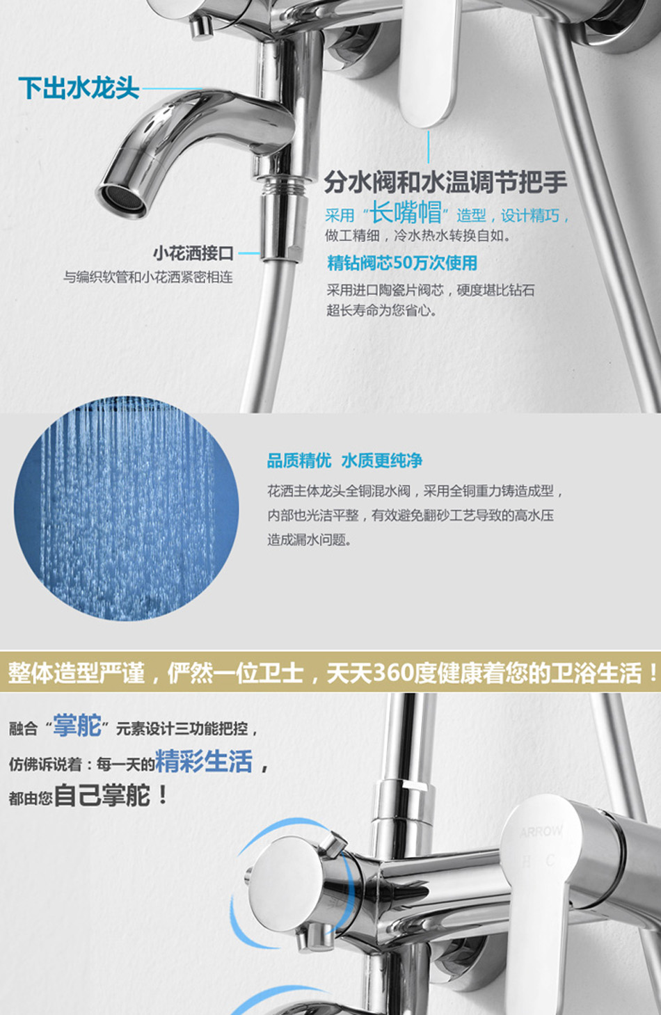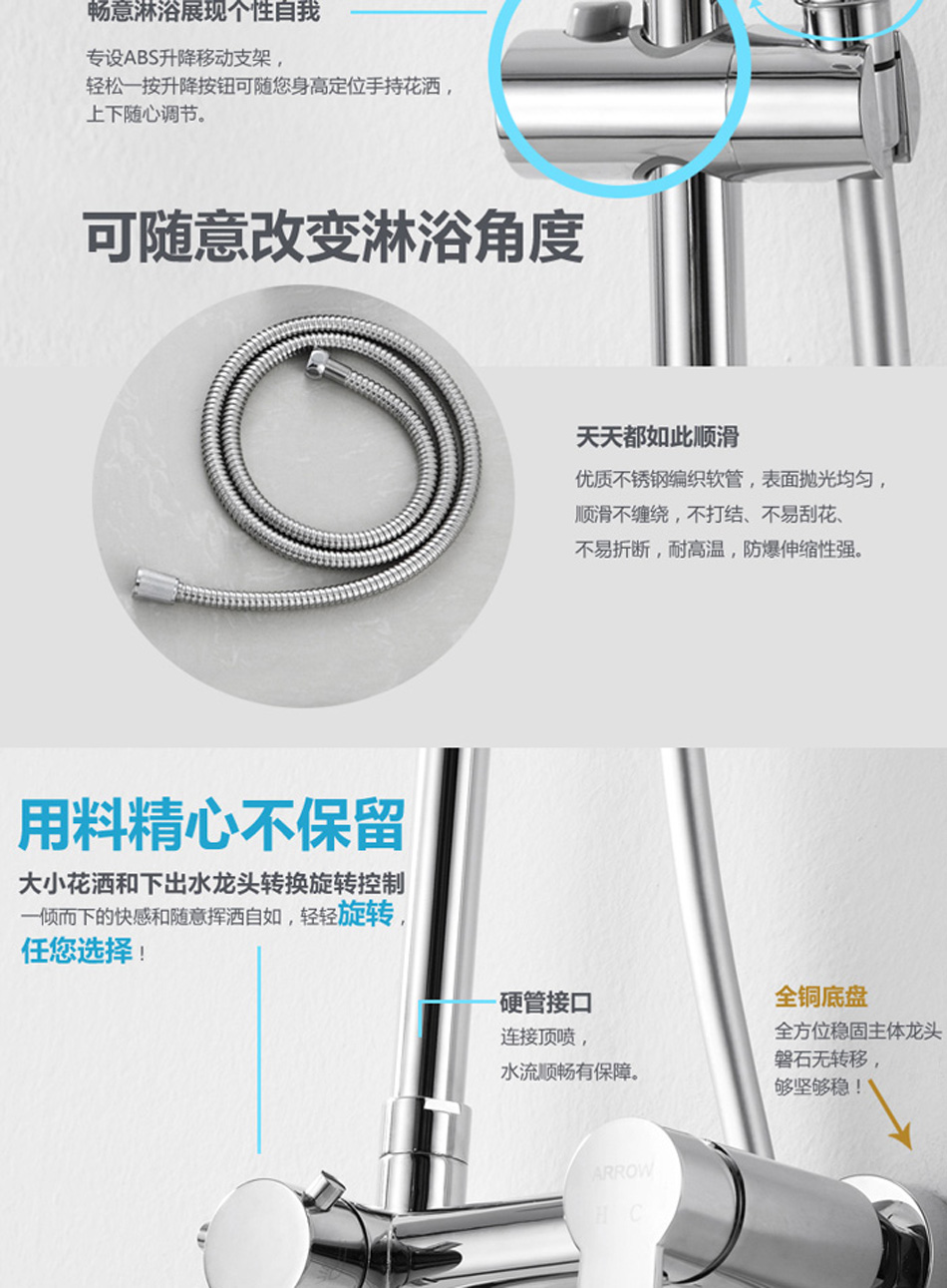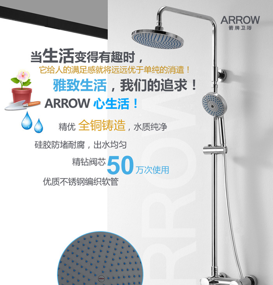 箭牌卫浴 ARROW 三出水升降淋浴花洒套装AMG13S805