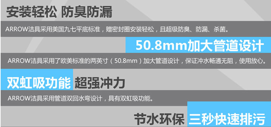 箭牌洁具 ARROW 喷射虹吸式连体坐厕马桶坐便器AB1190