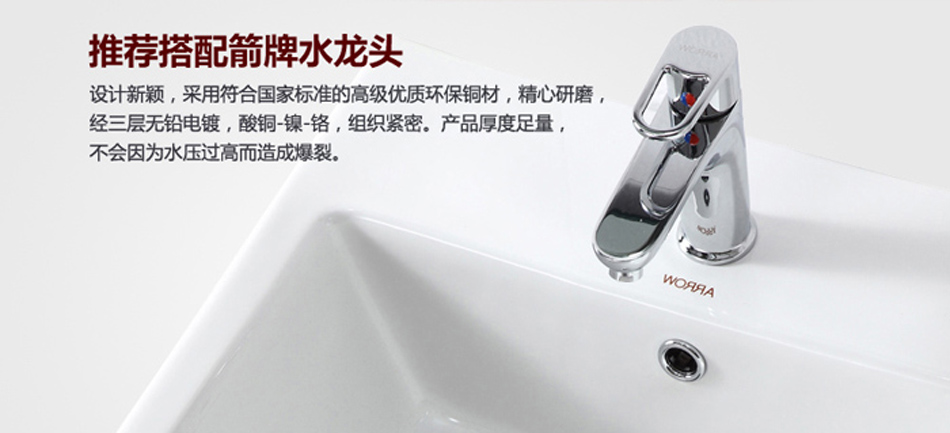 ARROW箭牌卫浴简约洗脸盆镜柜组合挂墙实橡胶木浴室柜APGM10L352B