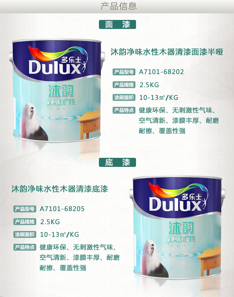 多乐士水性木器漆 多乐士沐韵净味水性木器漆清漆底漆2.5KG木质家具油漆透明清漆
