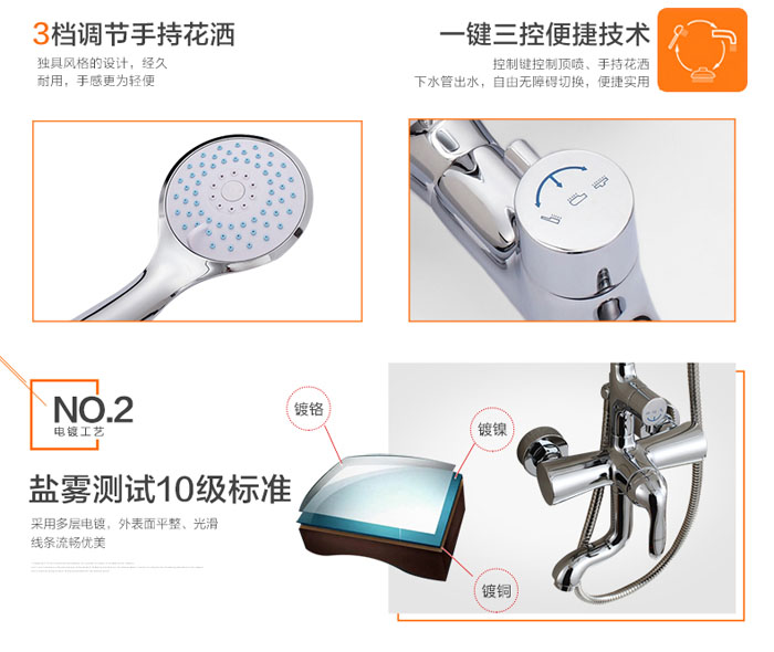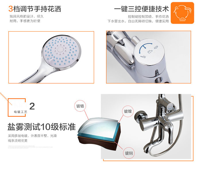 陶瓷阀芯表面电镀三层,多功能花洒