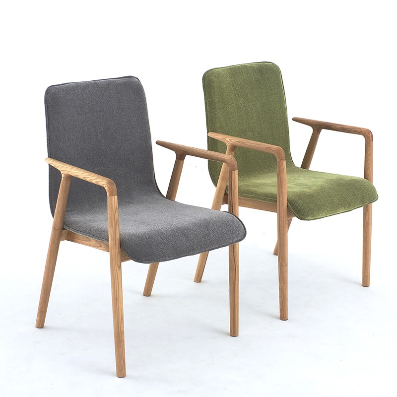 椅子绿色/灰色DAaZ设计师原创/现代简约创意布艺餐椅/原生态实木扶手椅/休闲椅